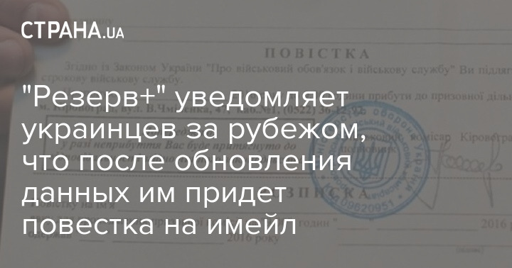 "Резерв+" уведомляет украинцев за рубежом, что после обновления данных им придет повестка на имейл