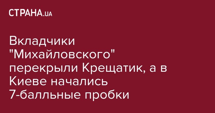 Блокированием дорог в столице вкладчики банка "Михайловский" хотят привлечь внимание к заморозке и невыплате их банковских вкладов. Около 300 человек продолжают требовать у президента Петра Порошенко вернуть им вложенные в банк "Михайловский" средства.