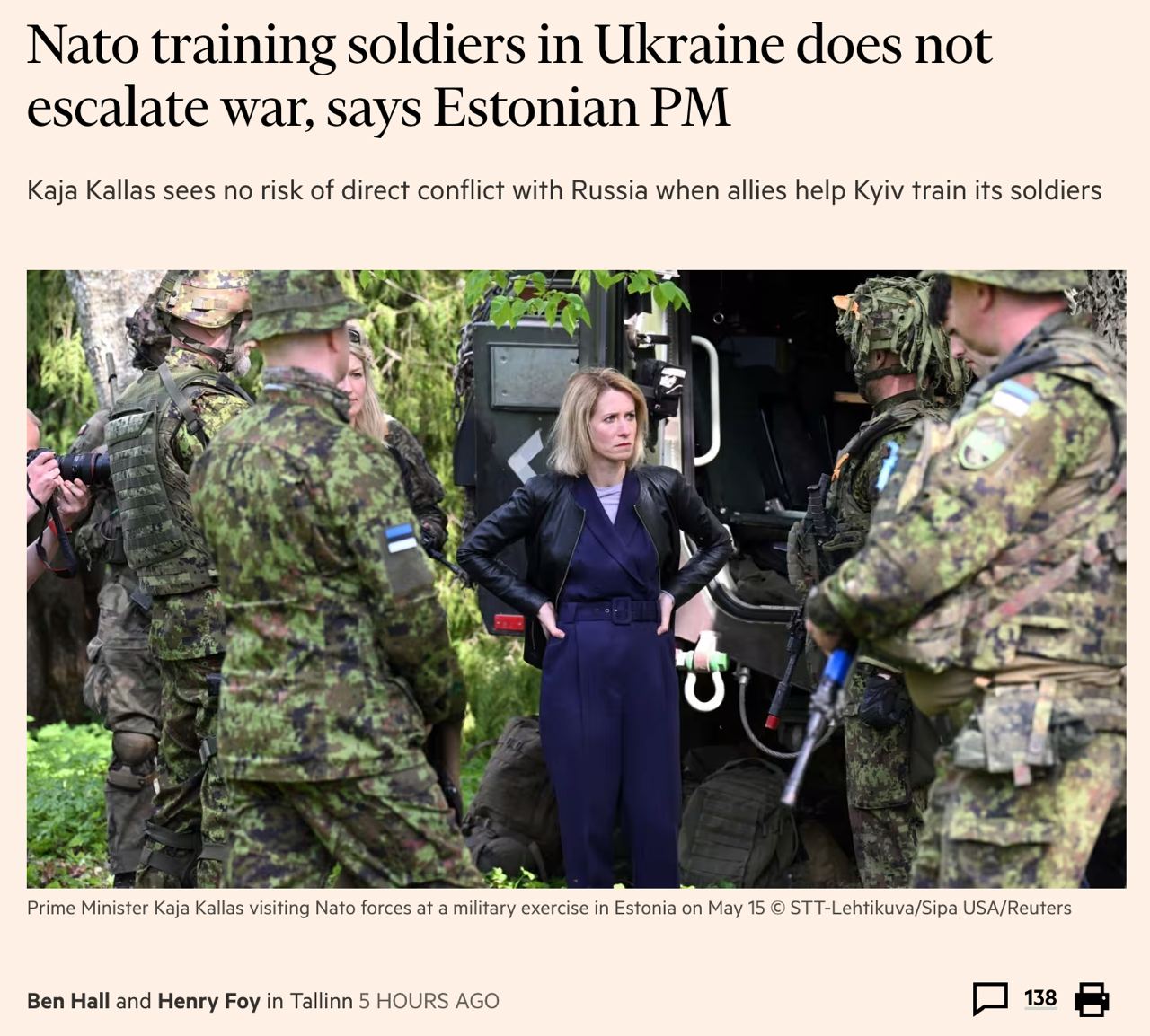 12:13 Некоторые западные страны уже отправили своих военных в Украину для тренировки солдат ВСУ "на свой страх и риск", сообщила Financial Times премьер Эстонии Кая Каллас.