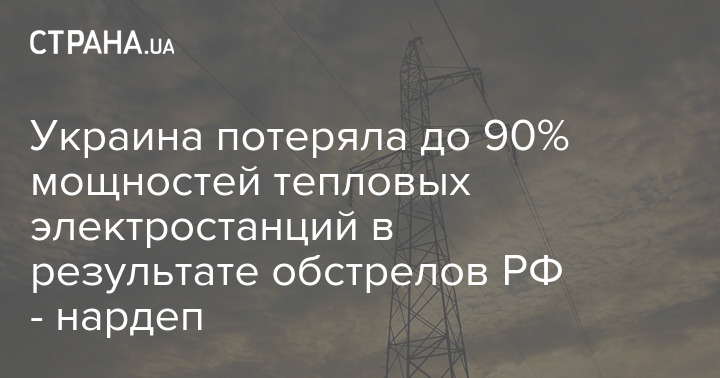 Украина потеряла до 90% мощностей тепловых электростанций в результате обстрелов РФ - нардеп