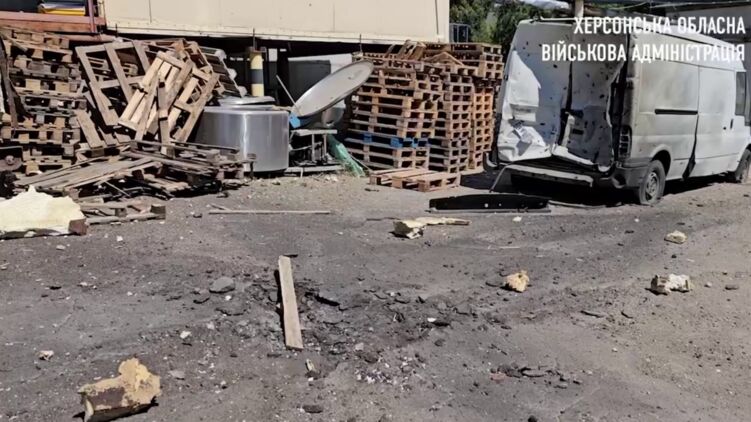 Последствия обстрела предприятия в Херсоне. Фото: скрин