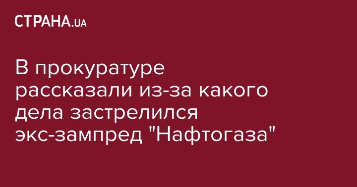 "Генеральной прокуратурой Украины в пределах уголовного производства по факту хищения денежных средств ГАО "Черноморнафтогаз" НАК "Нафтогаз Украины" при закупке самоподъемных плавучих буровых установок был проведен ряд обысков. После проникновения в одно из обыскиваемых помещений следственной группой был обнаружен труп бывшего заместителя председателя НАК "Нафтогаз Украины", он, вероятно, выстрелил из огнестрельного оружия во время проникновения. В настоящее время на месте работает следственная оперативная группа", - говорится в сообщении.