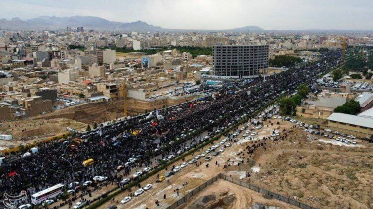 В сети появились фото и видео тысяч людей на похоронной процессии погибшего при крушении вертолета президента Ирана Эбрахима Раиси в городах Тебриз и Кум.