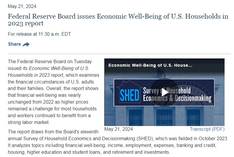 Об этом говорится в отчете Федеральной резервной системы об экономическом благополучии домохозяйств США в 2023 году.