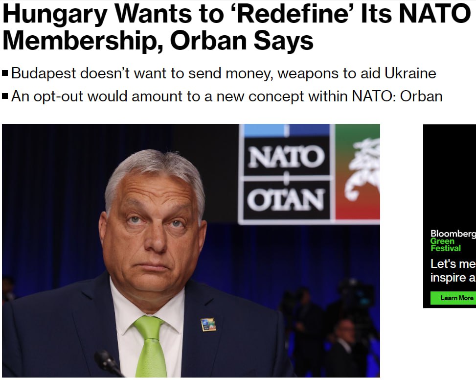 Венгрия работает над "переопределением" статуса членства страны в НАТО, чтобы она могла потенциально отказаться от углубления поддержки Украины со стороны военного блока.