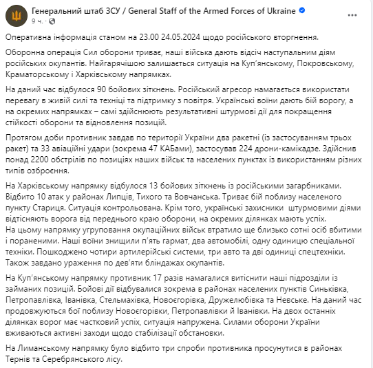 Война в Украине идет уже 822-й день. Следим за последними новостями и ключевыми событиями 25 мая 2024 года в обновляемом онлайне.