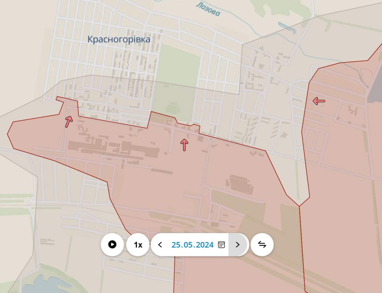 Судя по карте, РФ контролирует менее половины Красногоровки.