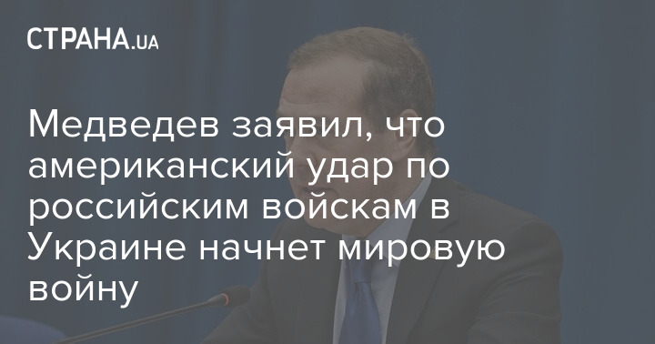Заместитель председателя Совета безопасности РФ Дмитрий Медведев заявил, что американский удар по российским войскам в Украине будет означать начало мировой войны.