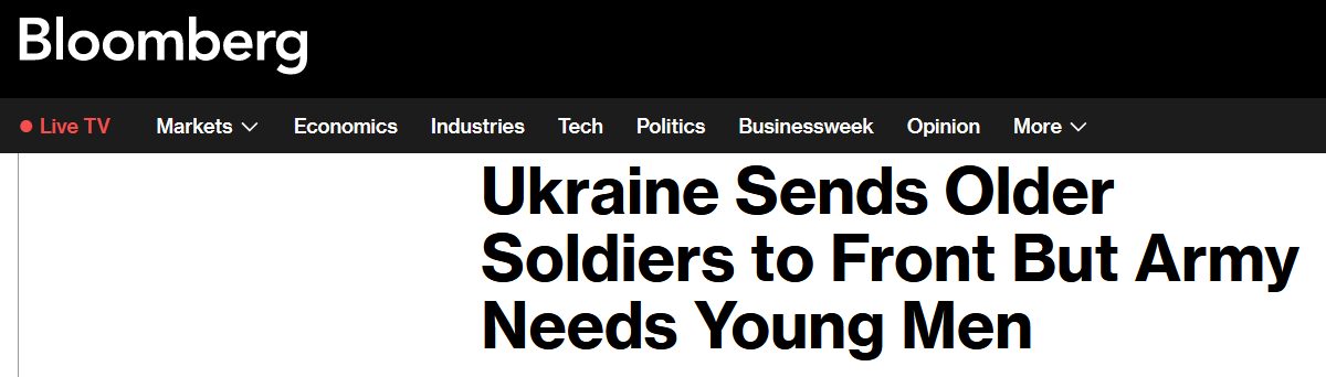 "Идея о том, что молодежь должна избегать поля боя, была закреплена в законе, до недавнего времени призыв на военную службу осуществлялся только для лиц старше 27 лет. Недавно он был снижен до 25 лет, но ситуация усугубляется неэффективным вызовом тех, кто попадает в целевой диапазон. Среди населения, перемещенного из-за боевых действий, многих молодых людей невозможно найти", - пишет Bloomberg.