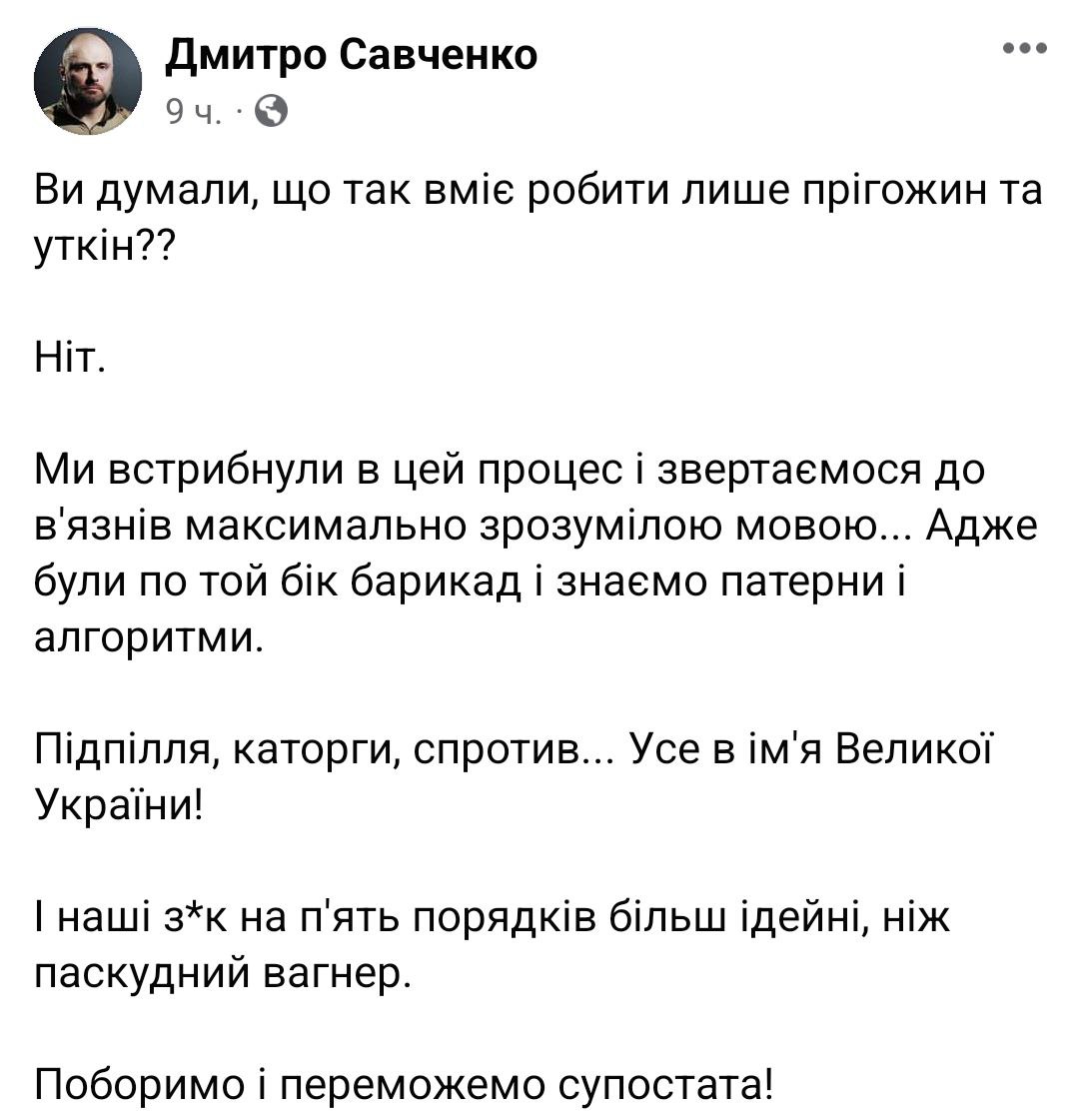 "Мы запрыгнули в этот процесс и обращаемся к заключённым на максимально понятном языке. Ведь мы были по ту сторону баррикад и знаем все паттерны и алгоритмы", - заявил Савченко.