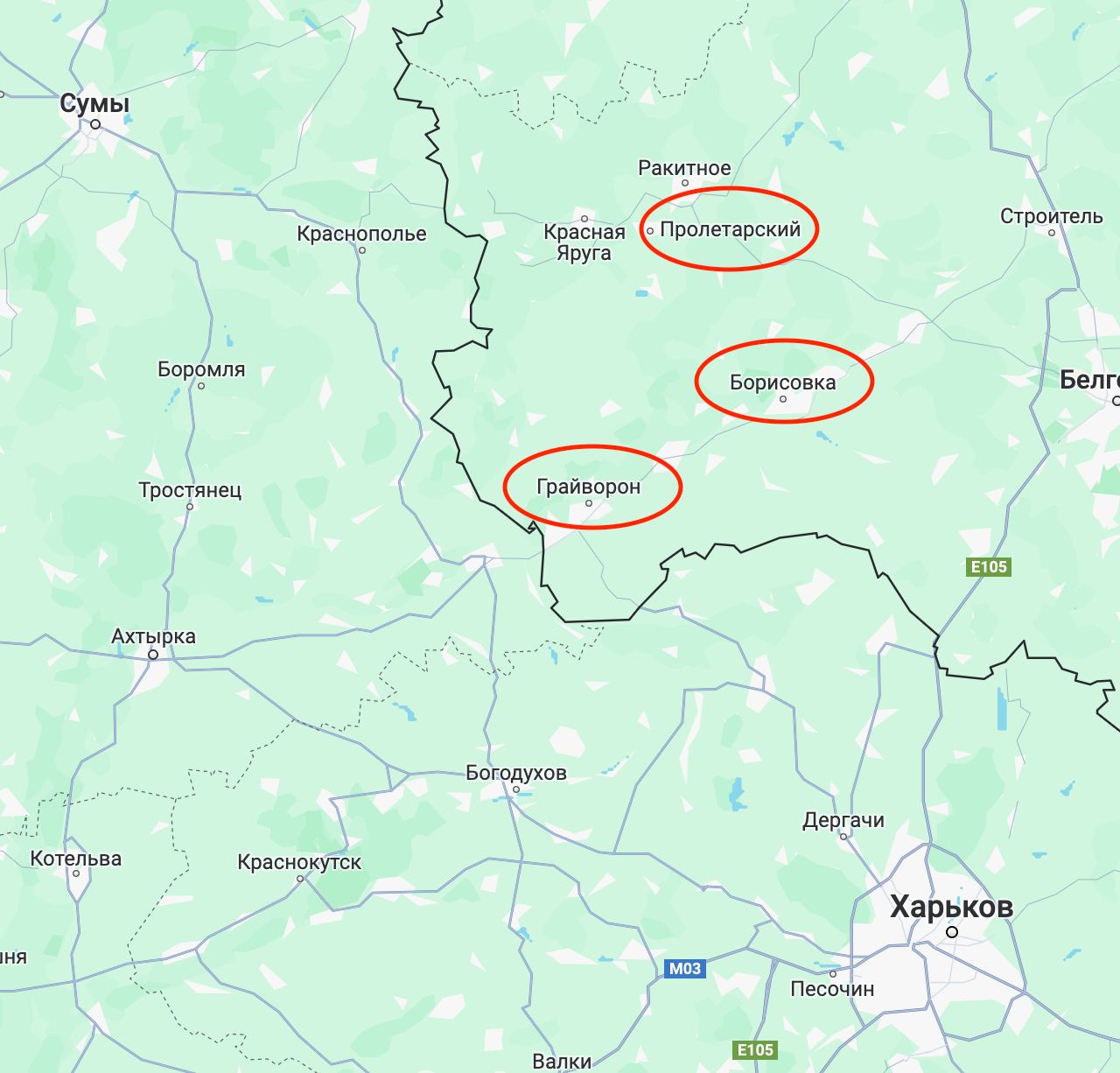 В Белгородской области в районе Грайворон-Борисовка-Пролетарский. Отсюда наступление может развиваться в сторону Золочева и Богодухова к северо-западу от Харькова или на запад в направлении населенных пунктов вдоль трассы Р-45, соединяющей Богодухов и Сумы. Или в обоих направлениях.