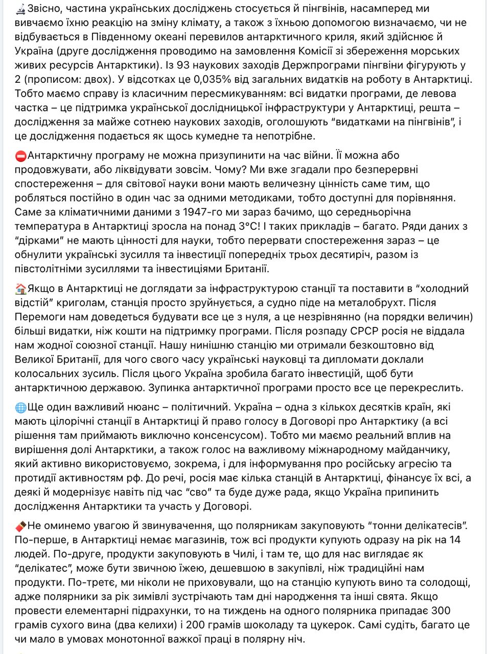 Также сообщается, что изучение пингвинов, на котором сконцентрировали свои заголовки журналисты, является далеко не основным элементом исследований.