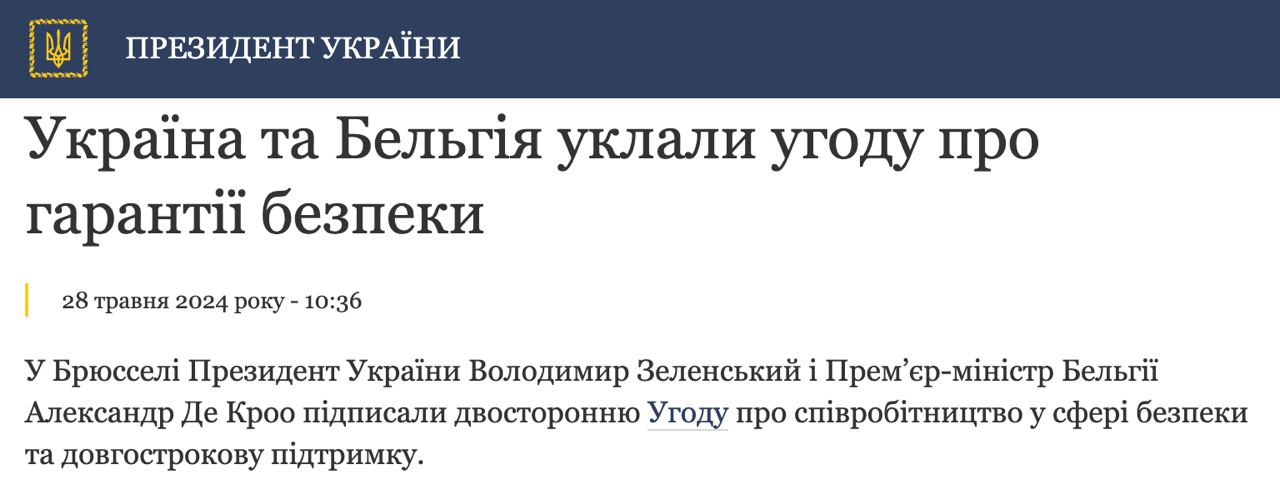11.05 Украина и Бельгия заключили "соглашение о гарантиях безопасности", сообщает Офис президента.