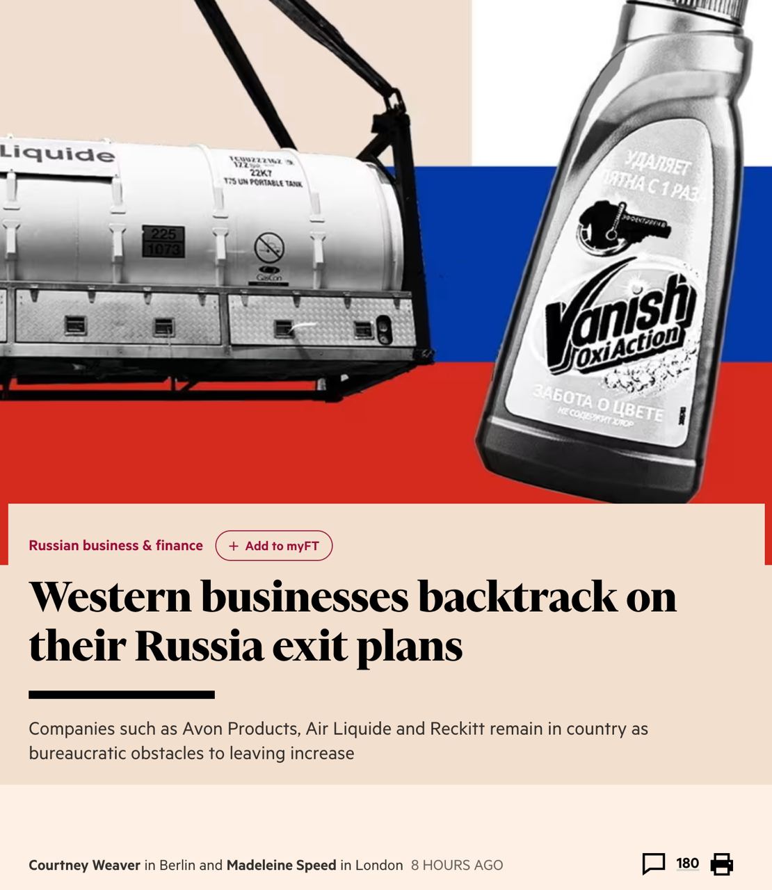 14.50 Многие западные компании отказались от планов по выходу из России, поскольку "бюрократические препятствия растут, а потребительская активность восстанавливается", пишет Financial Times.