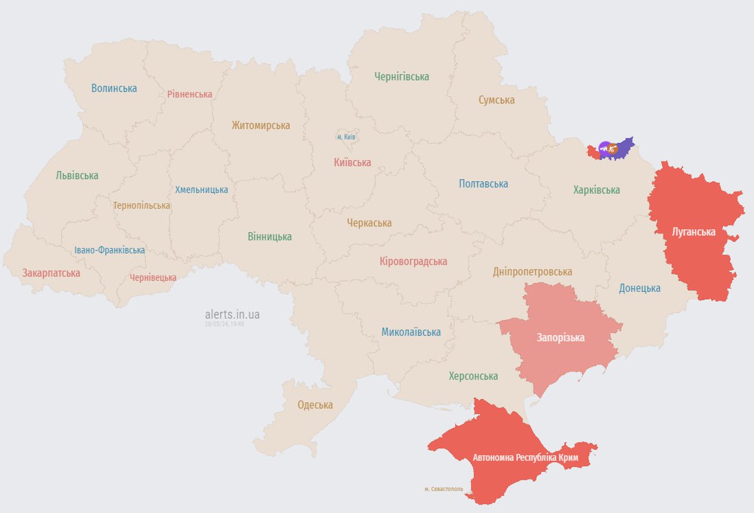 19.50 Отбой тревоги везде, кроме Запорожской области.