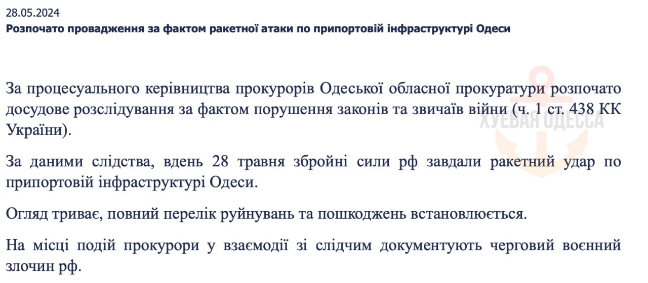 20.52 Дневной ракетный удар в Одессе был нанесен по припортовой инфраструктуре.