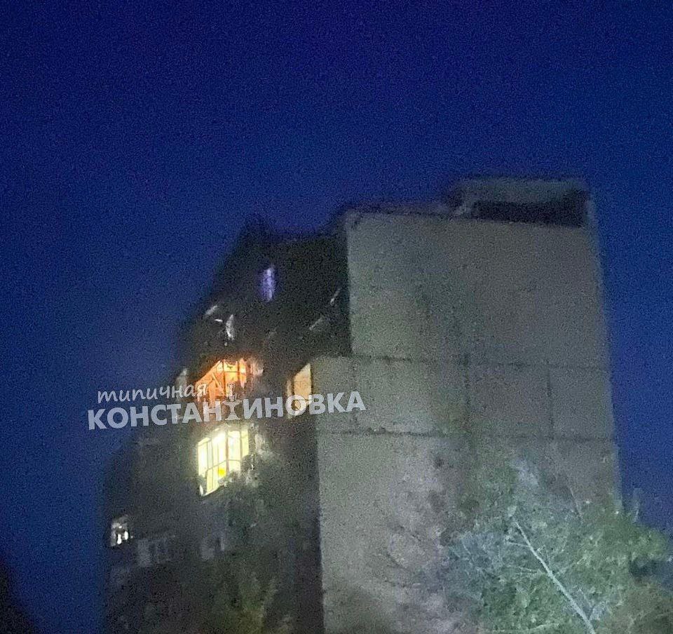 22.49 В Константиновке Донецкой области - прилет по жилой многоэтажке в результате удара сегодня вечером.