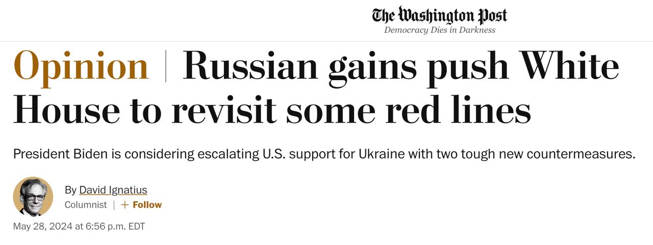 "Эти шаги будут представлять собой значительную эскалацию тщательно выверенной политики Байдена. Тот факт, что такие шаги сейчас рассматриваются, показывает растущую обеспокоенность администрации уязвимостью Украины на поле боя", - пишет Игнатиус.