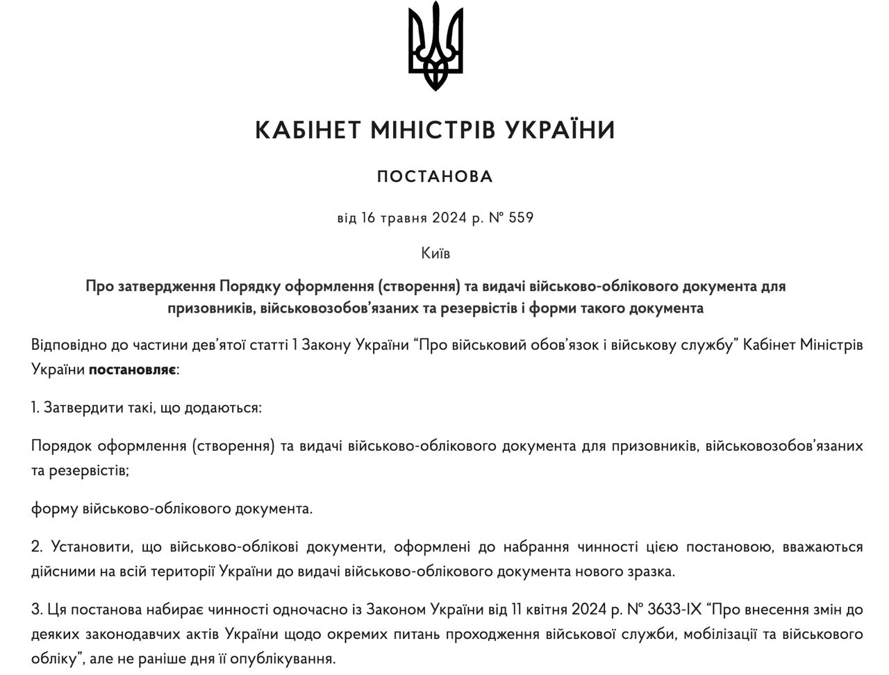 Об этом говорится в постановлении №559 Кабинета министра Украины.