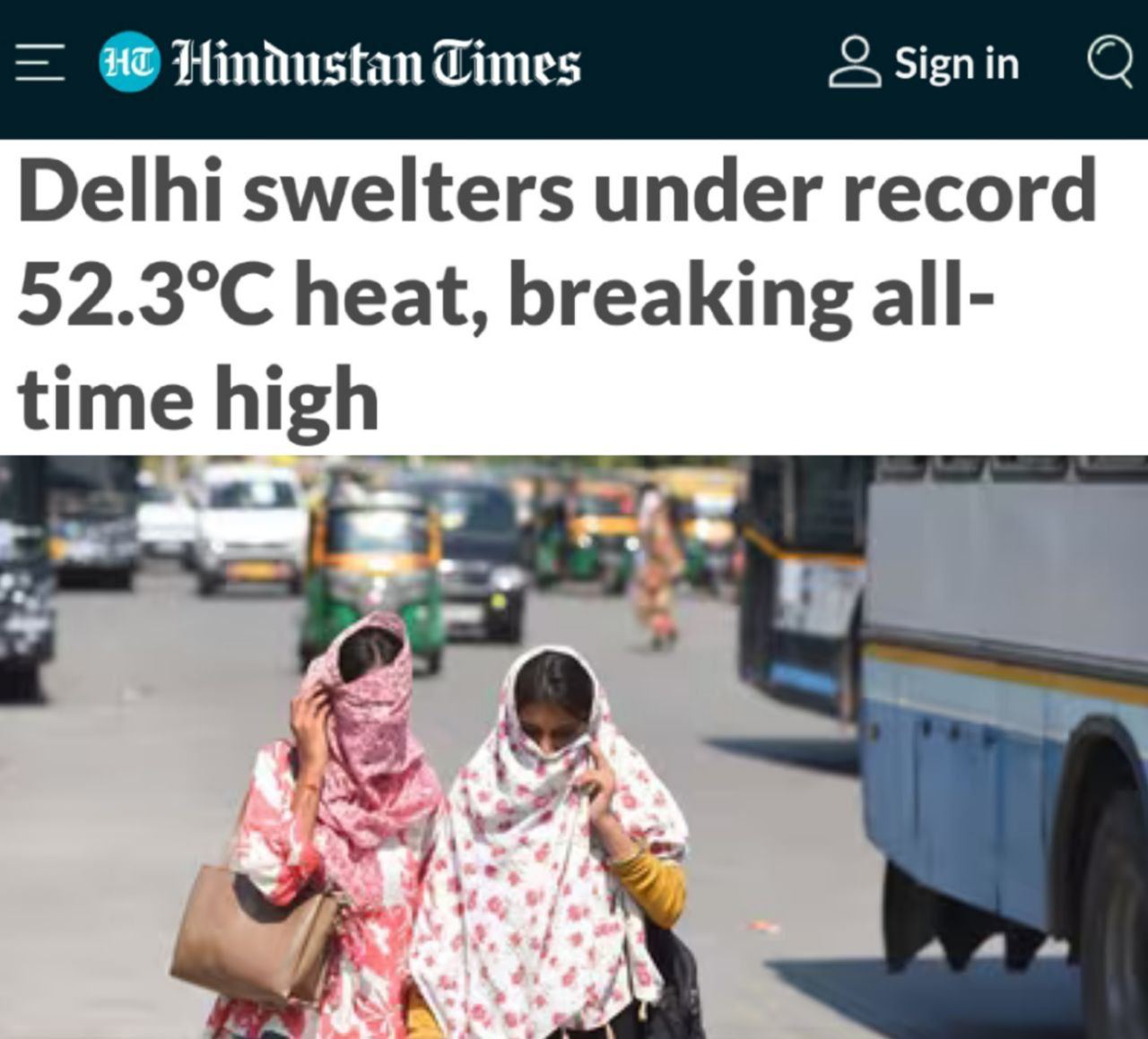 В Индии зафиксирована рекордная жара. В Дели температура воздуха местами поднялась до +52,3 градусов.