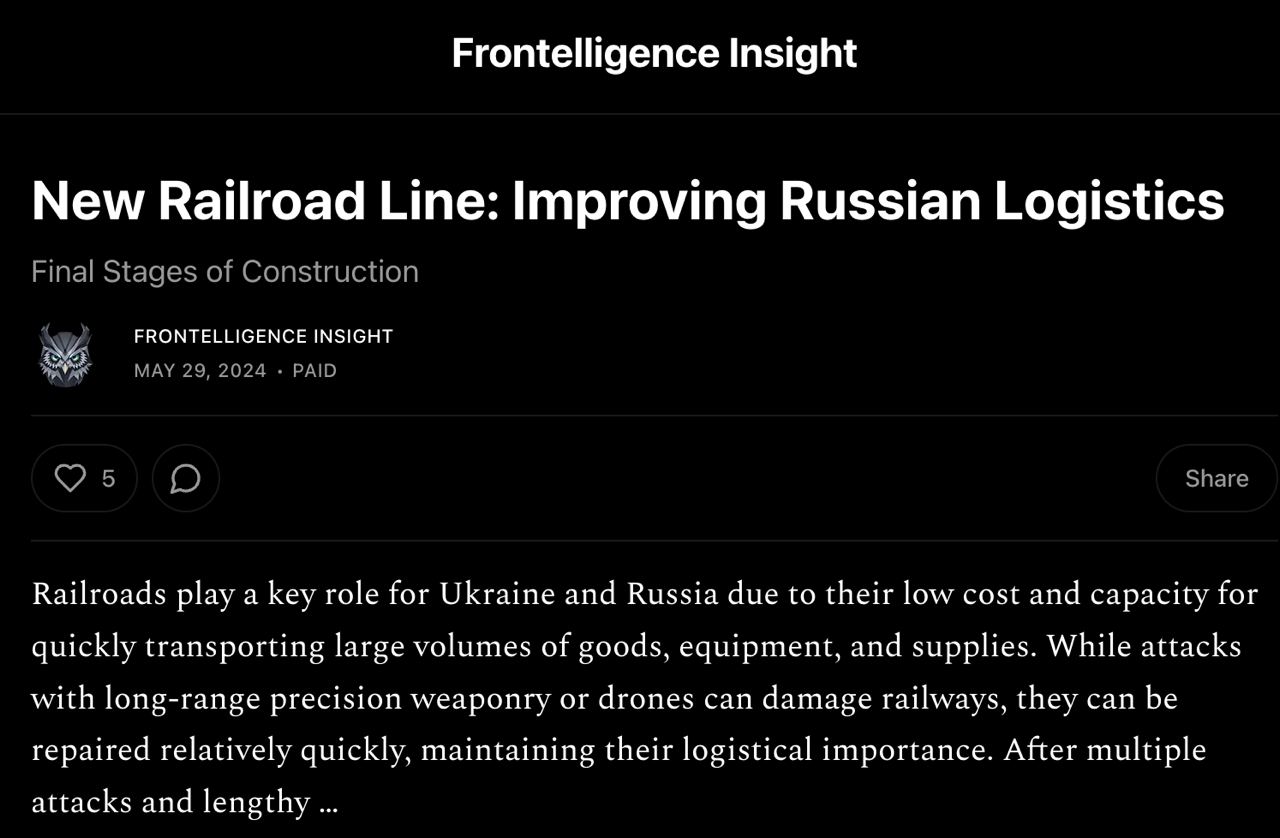 Ранее британская разведка сообщала, что Россия строит железную дорогу через оккупированные территории Украины для альтернативной возможности доставки военной техники.