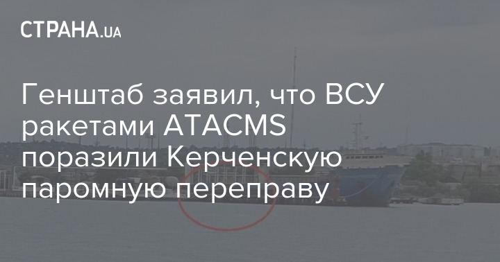 "Сегодня ночью Силы обороны Украины нанесли удар ракетами ATACMS по Керченской паромной переправе… В результате поражения существенные повреждения получили два парома, которые осуществляли железнодорожные и автомобильные перевозки. Один из них сел на мель, чем заблокировал функционирование всей Керченской переправы", – говорится в сообщении генштаба.