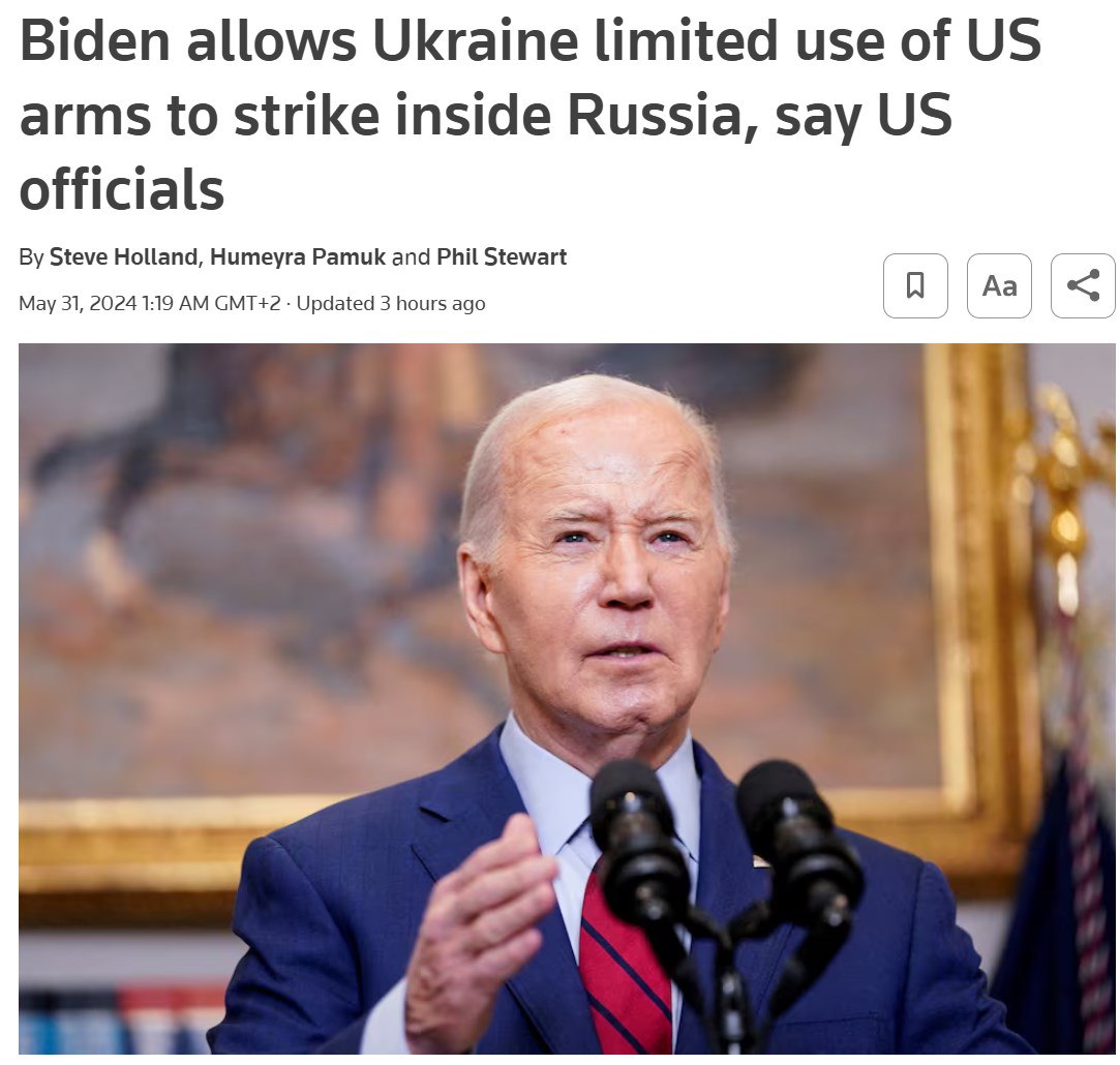 "Решение Байдена применимо только к целям внутри России вблизи границы с Харьковской областью", - сообщил источник агентства среди американских чиновников.
