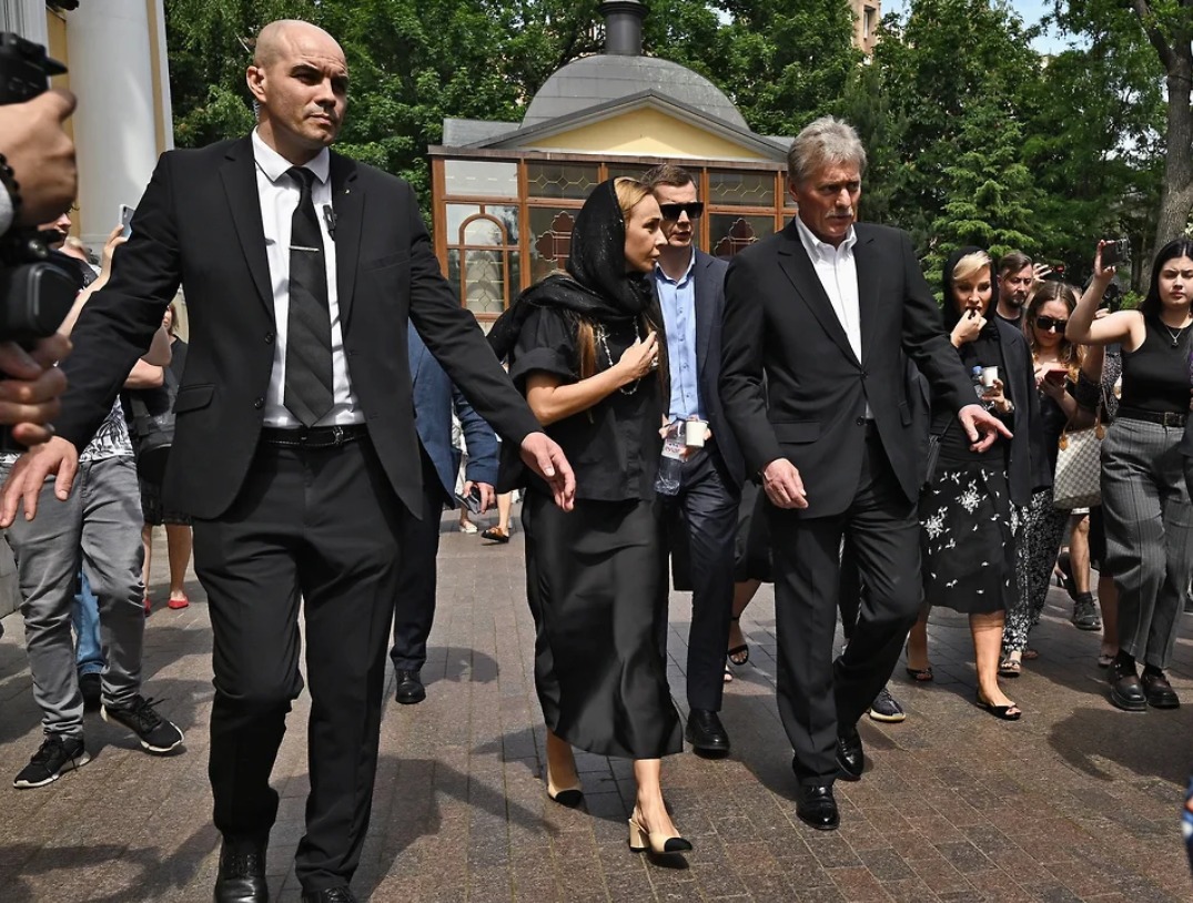 Навка и Песков на прощании с актрисой. Фото: Коммерсант