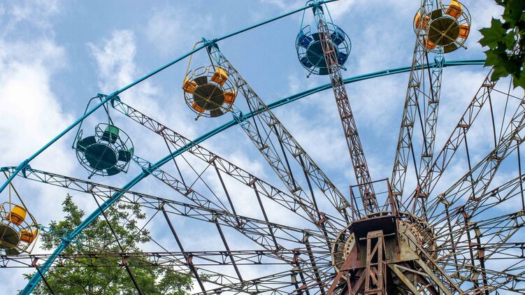 В городском парке Ивано-Франковска при отключении электроэнергии по графику почасовых отключений на колесе обозрения застряли мать с ребенком. Происшествие произошло вечером в субботу, 1 июня.