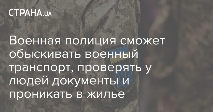 Военная полиция сможет запрещать движение военного транспорта, обыскивать его, проверять у людей документы и проникать в жилье.