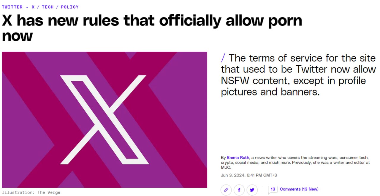 Контент NSFW может стать еще одной формой дохода для X, продажи рекламы в которой упали после покупки Маском, объясняет The Verge.