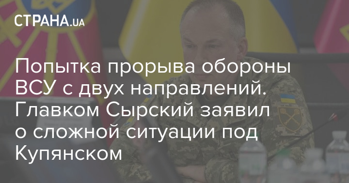 Попытка прорыва обороны ВСУ с двух направлений. Главком Сырский заявил о сложной ситуации под Купянском