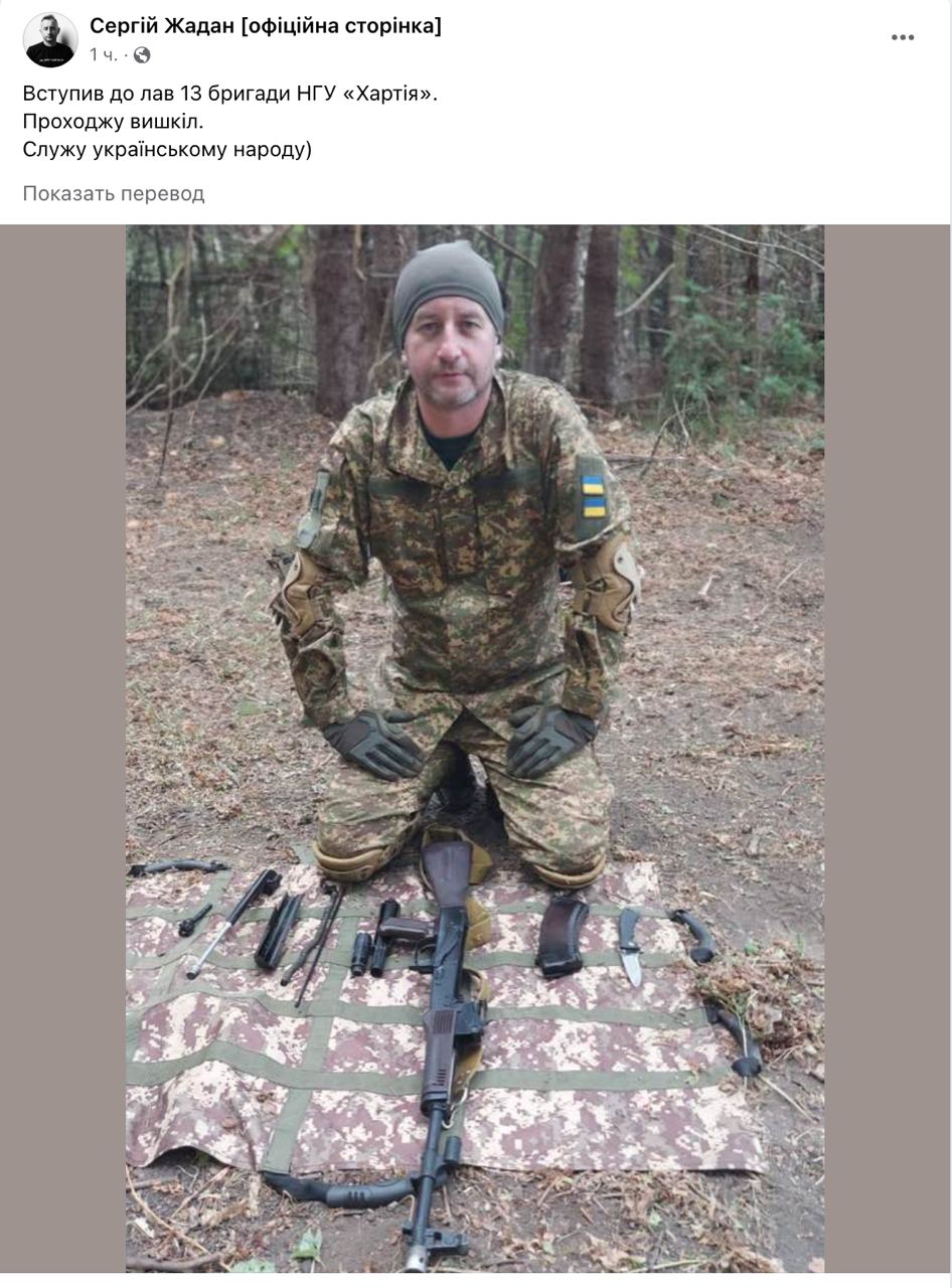 В соцсетях он соообщил, что проходит военную подготовку в 13-ой бригаде Нацгвардии "Хартия", и опубликовал фото.