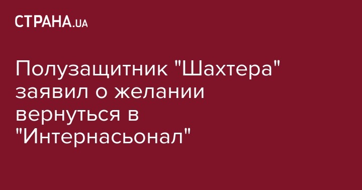 Хавбек "Шахтера" Тайсон изъявил желание вернуться на родину, в бразильский "Интернасьонал". Об этом он заявил в интервью изданию Globo, передает XSport.