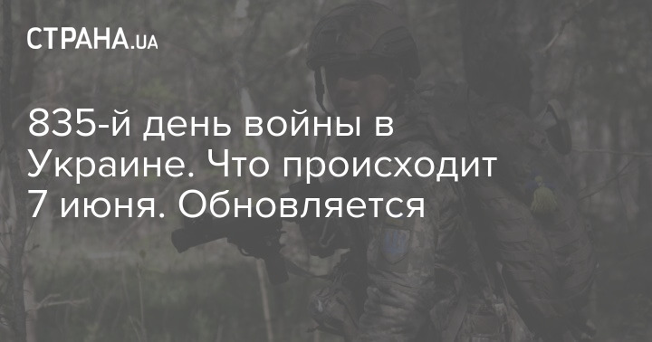 В пятницу, 7 июня, в Украине идет 835-й день войны с Россией.