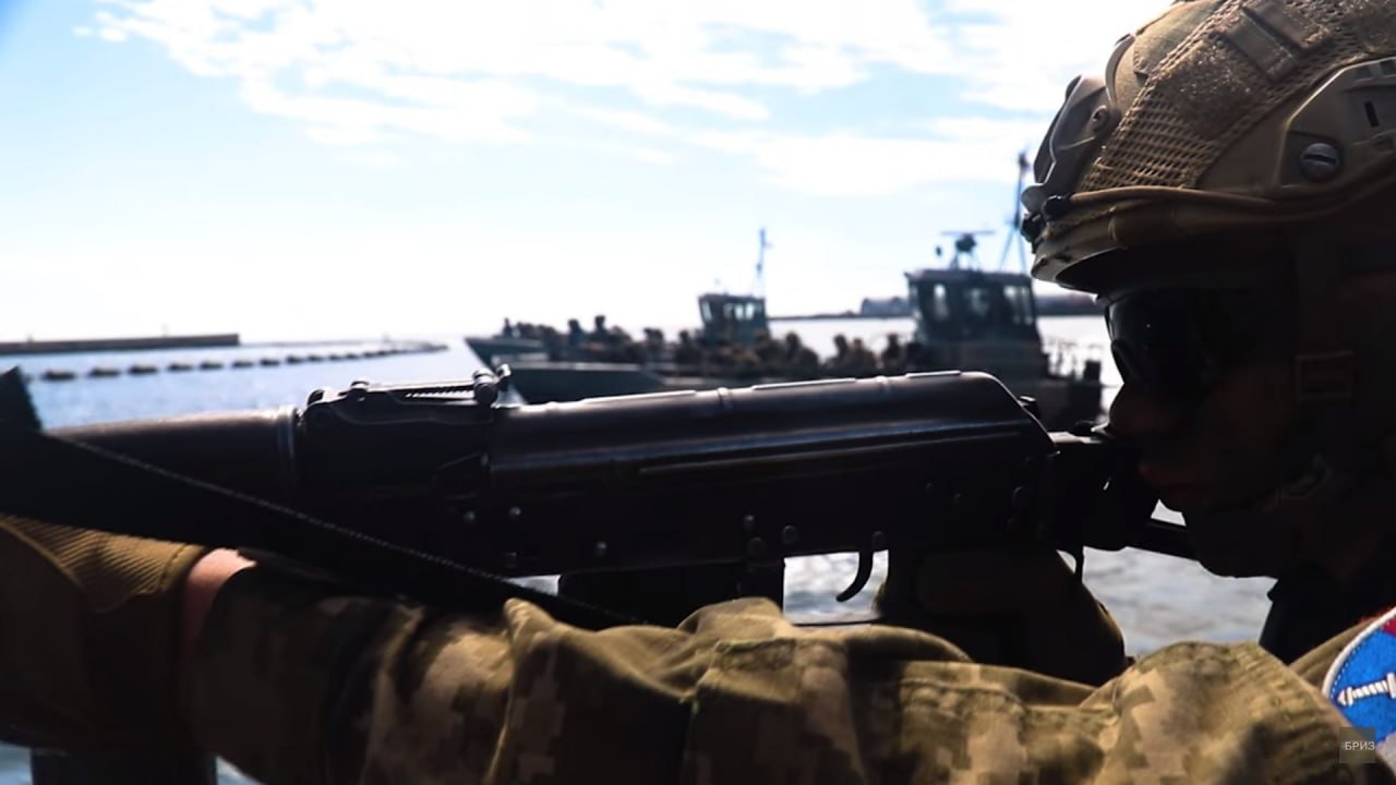 "Группа десанта в боевой выкладке передислоцировалась с одного побережья на другое, выполняя маневрирование и избегая вражеских обстрелов, параллельно совершая обход потенциально опасных участков", - сообщают ВМСУ.