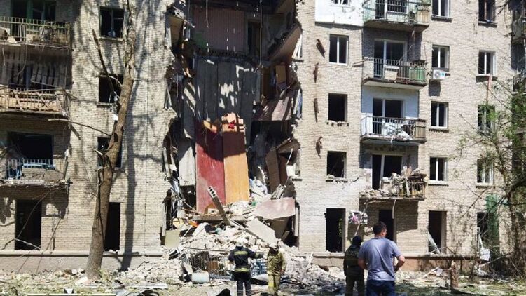 В Луганске после прилета обвалился подъезд пятиэтажки.