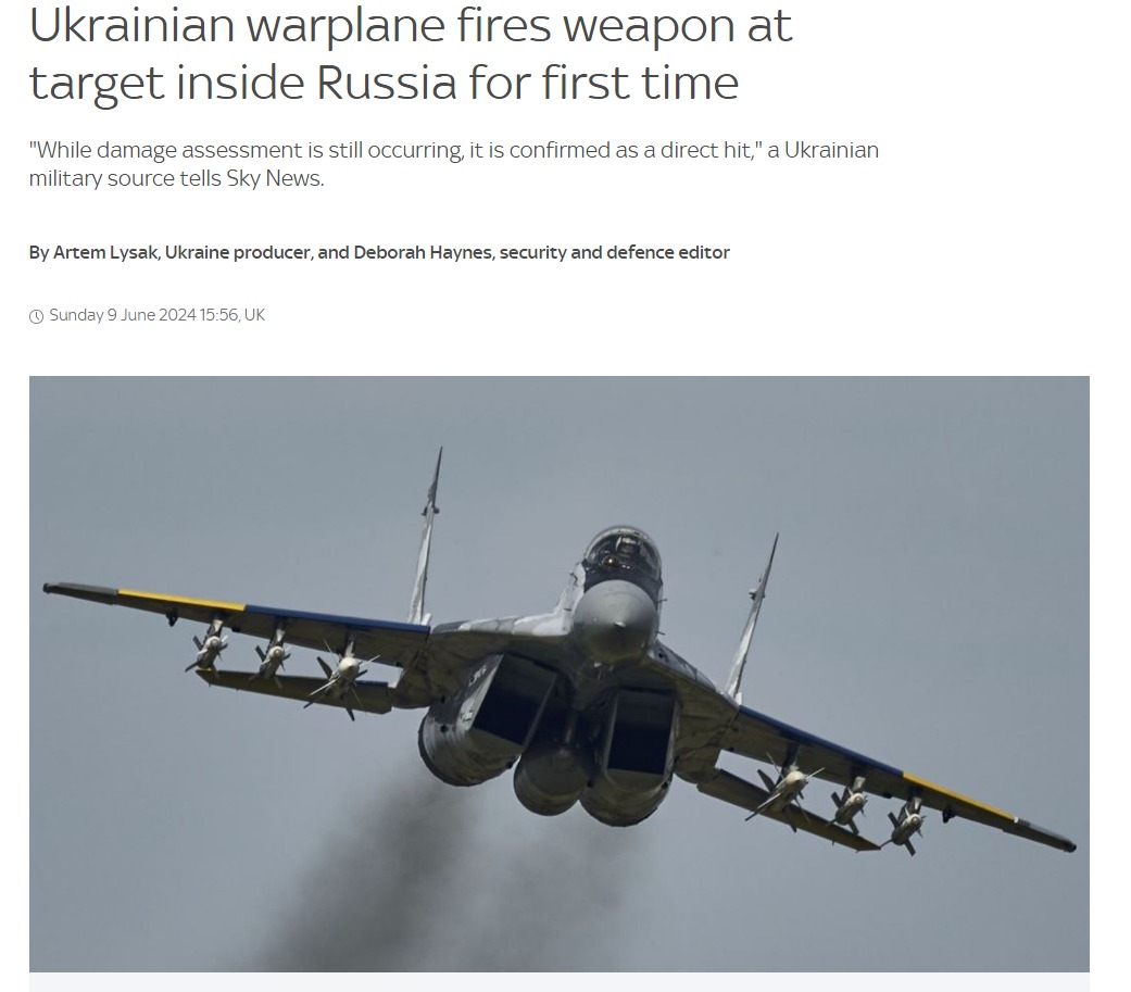 Украина наносила удары беспилотниками вглубь территории России. Но использование военного самолета для ударов по целям внутри РФ может быть расценено Москвой как новая эскалация, добавили в Sky News.