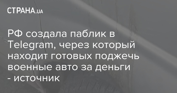РФ создала паблик в Telegram, через который находит готовых поджечь военные авто за деньги - источник