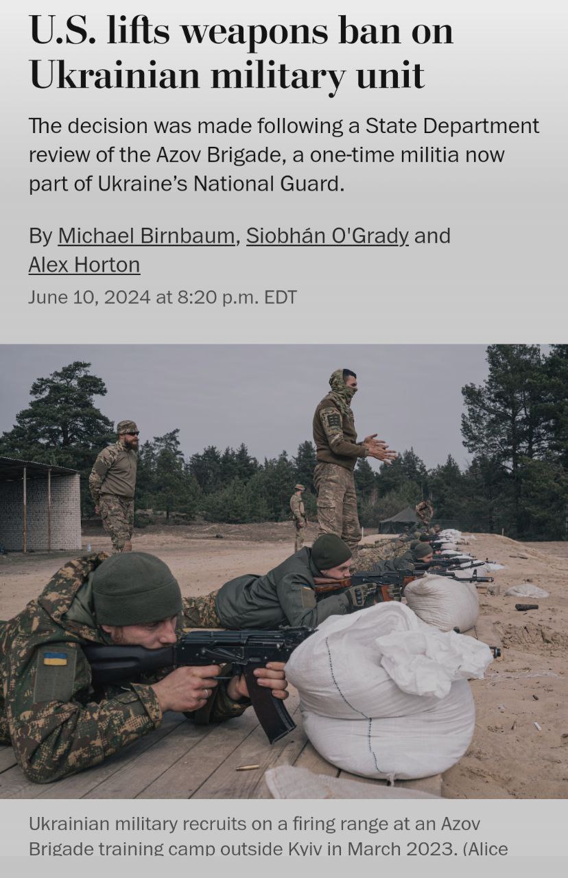 Запрет вводился после того, как США установили, что "некоторые из его ("Азова") основателей придерживаются расистских, ксенофобских и ультранационалистических взглядов, а представители ООН по правам человека обвинили группу в гуманитарных нарушениях".