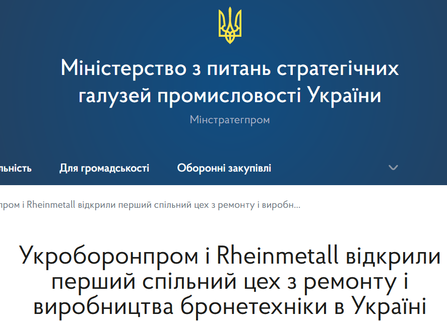 Информация появилась на официальном сайте Министерства стратегической промышленности Украины.