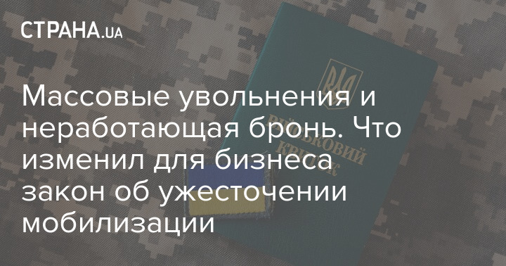 Мы уже писали о нововведениях, которые содержит новый закон о мобилизации для работы бизнеса. Так, в документе указано, что предприятия должны вести воинский учет работников, сверять данные военнообязанных с ТЦК и сообщать об изменениях в штатном расписании. Они также могут вручать сотрудникам повестки.