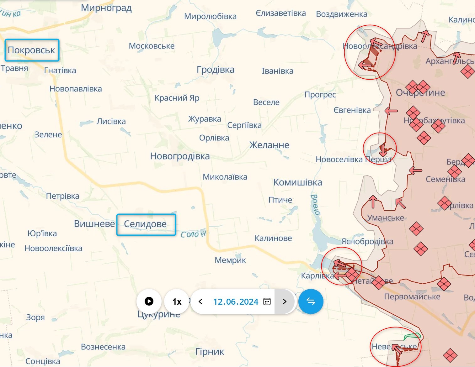 Также они прошли вперед в районе Новопокровского и в направлении Карловки, через которую ведет трасса на Покровск. Еще одно продвижение было южнее, в Невельском.