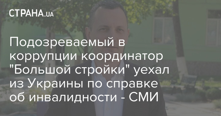 Подозреваемый в коррупции координатор "Большой стройки" уехал из Украины по справке об инвалидности - СМИ