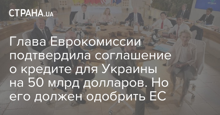 Глава Еврокомиссии Урсула фон дер Ляйен подтвердила выделение Украине 50-миллиардного кредита на саммите лидеров G7. Он будет обеспечен доходами от замороженных российских активов.