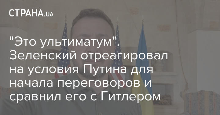 Владимир Зеленский назвал условия президента РФ Владимира Путина для начала мирных переговоров "ультиматумом, которому нельзя доверять".