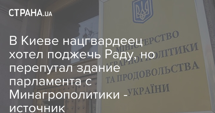 Сегодня утром в Киеве военнослужащий Национальной гвардии Украины хотел поджечь Верховную Раду, но перепутал ее со зданием Министерства аграрной политики.