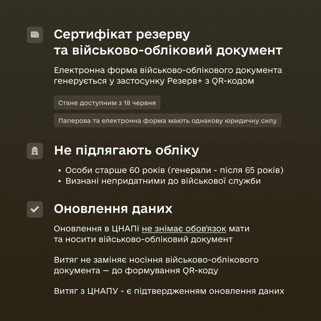 Напомним, ранее сообщалось, что с завтрашнего дня, 18 июня, в приложении "Резерв+" должен появиться QR-код. Он станет полноправной заменой бумажного военного билета. Такой электронный документ будет котироваться, в том числе, при пересечении границы.
