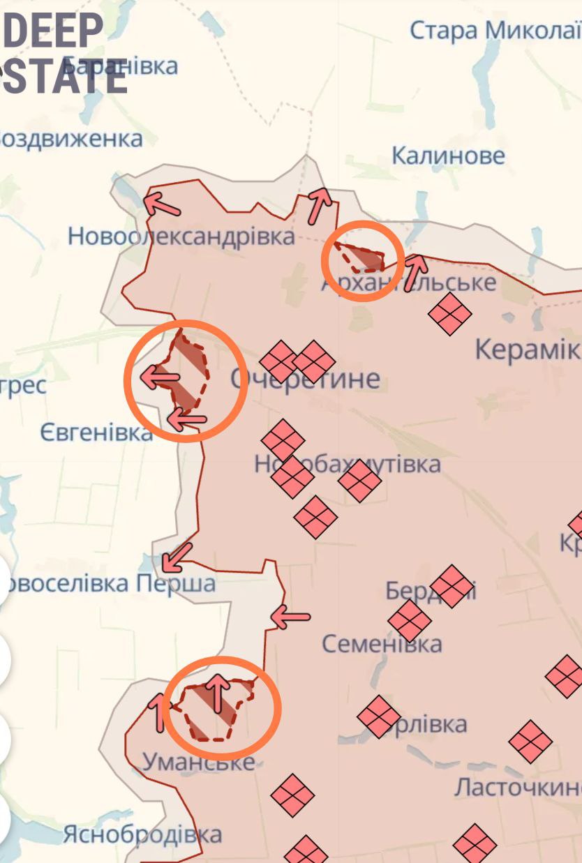 Ранее Deep State сообщал, что российские войска продвинулись под Очеретино - в районе Новоалександровки и Сокола.