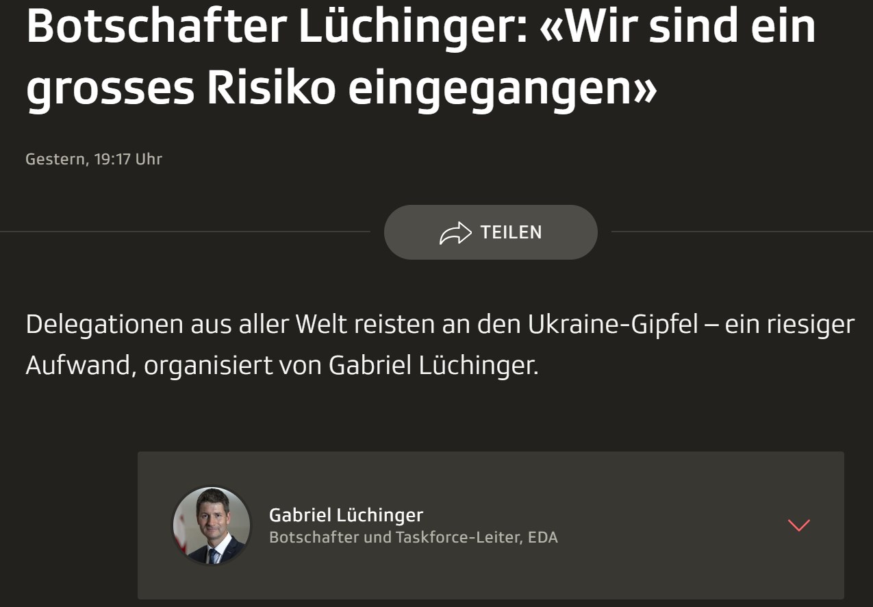 Об этом заявил глава департамента международной безопасности МИД Швейцарии Габриэль Люхингер в интервью радио SRF